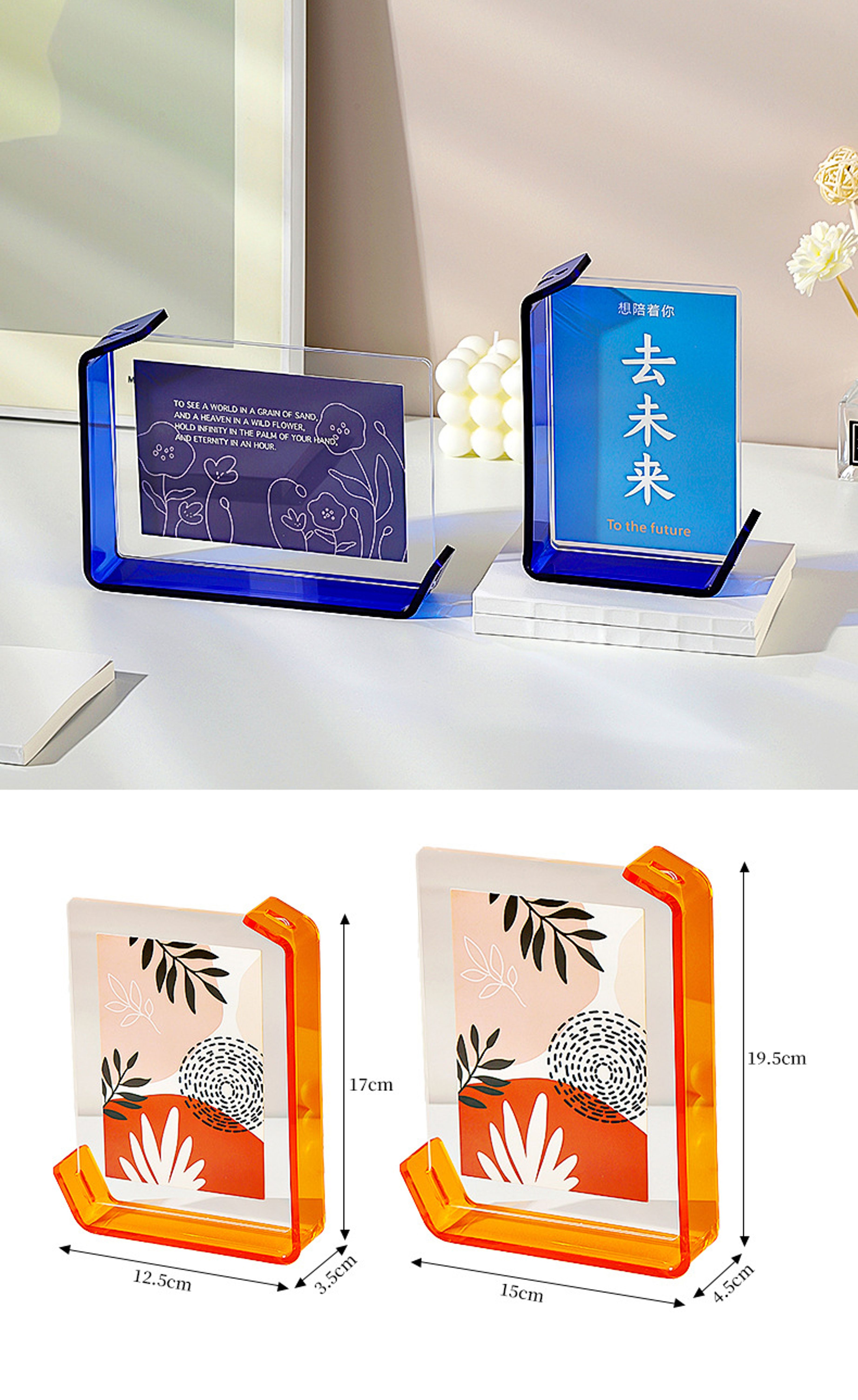 6 inch or 7 inch L-shaped acrylic photo frame